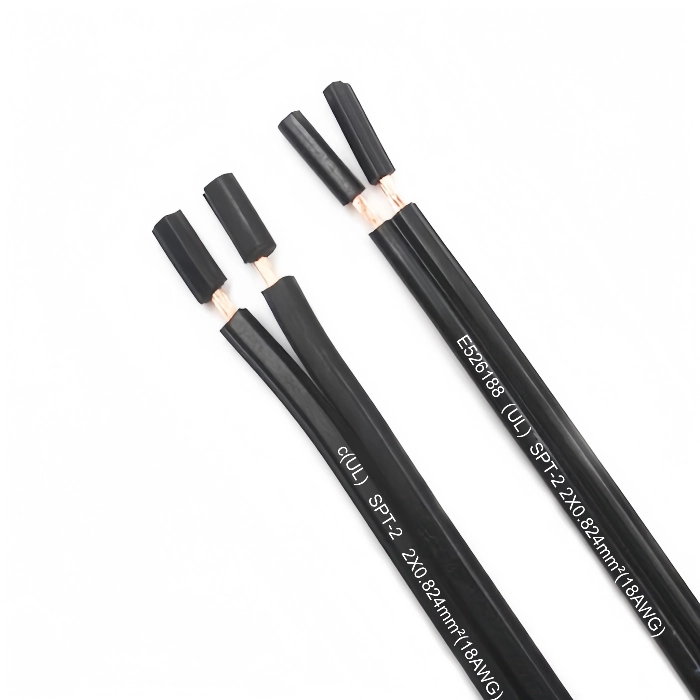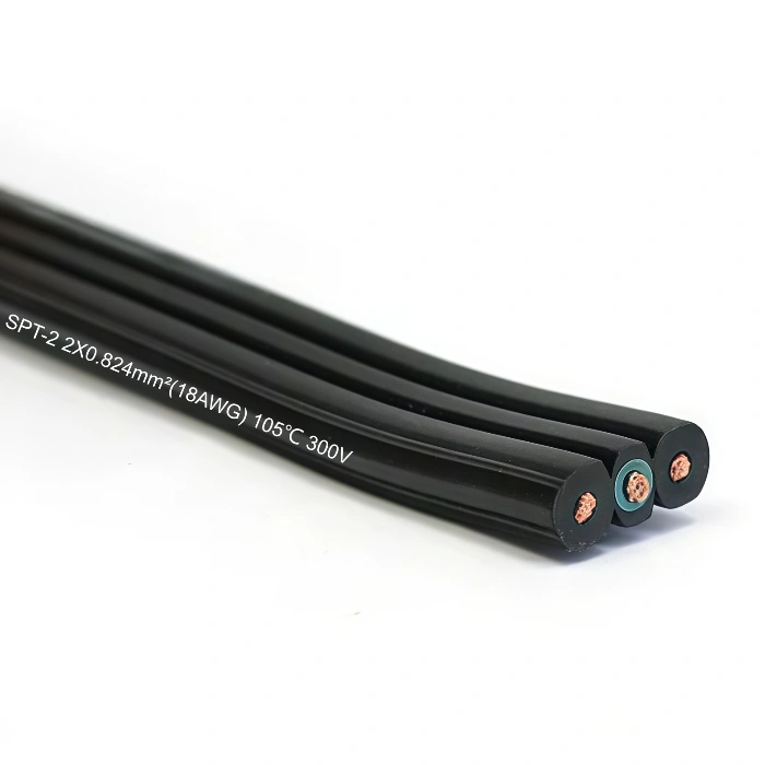 SPT-2/SPT-2W PVC Flexible Power Cords specifically a two-conductor, 18-gauge cord with a thinner insulation layer, commonly used for low-voltage applications like landscape lighting, custom extension cords, and holiday decorations. It is known as "lamp cord" or "zip cord" because of its parallel conductors that are easily separated.