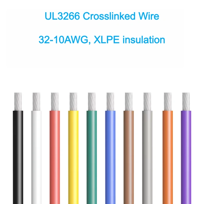 UL 3266 is a hook-up wire commonly used in internal wiring for electronic and electrical equipment. It has cross-linked polyethylene (XLPE) insulation that provides excellent resistance to heat, abrasion, and chemicals. UL 3266 is rated for 300 volts and can withstand temperatures up to 125°C, making it a reliable solution in demanding environments. UL 3266 wire is flexible, durable, and flame-retardant, which makes it perfect for tight spaces and confined electrical assemblies.It widely used in internal wiring for appliances, industrial controls, electronics, panel building.